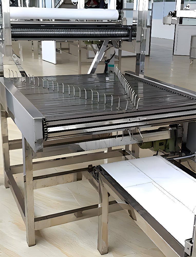 全自动河粉收集分段机是把河粉切条后,河粉经过冷却输送带冷却大面积散开的河粉自动收集在一起,然后再按客户所需长度,自动切断,使河粉长短统一,大大节省人工收粉、剪粉的劳动力,省时、省力、又省人工.